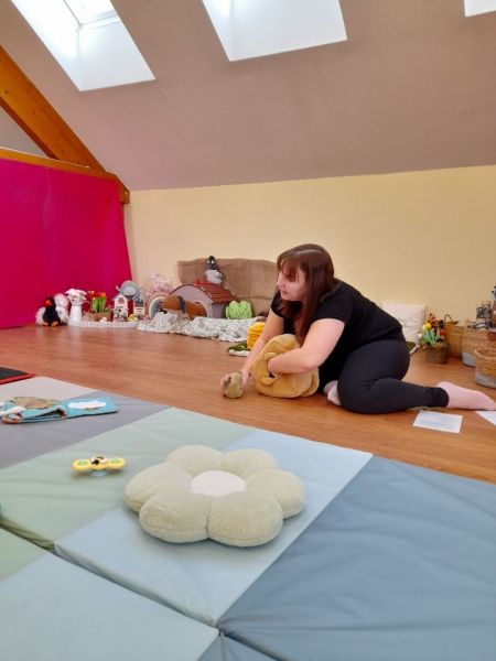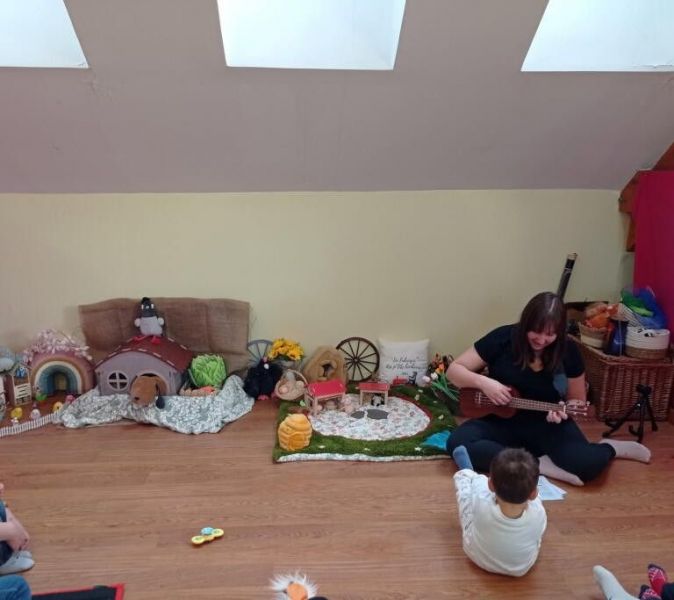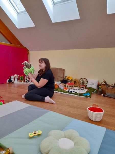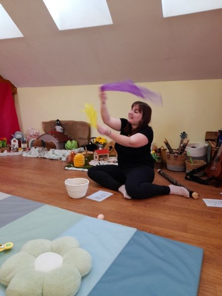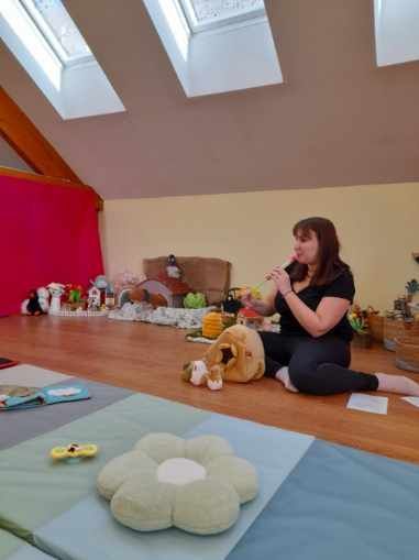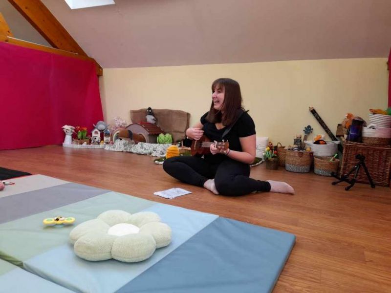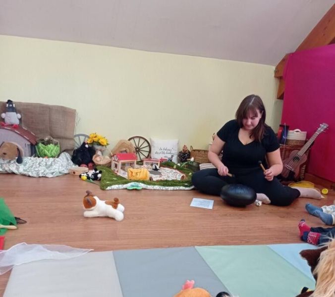 Chloé Lucquin de "La fabrique des p'tits bonheurs" a proposé un instant privilégié aux enfants mêlant comptine, musique et manipulation afin d'éveiller leurs sens.