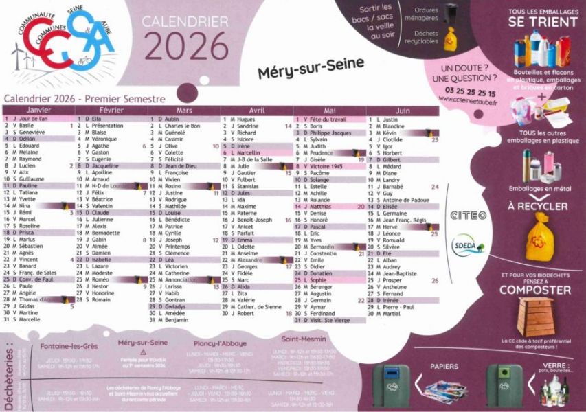 Calendrier du tri sélectif à Méry